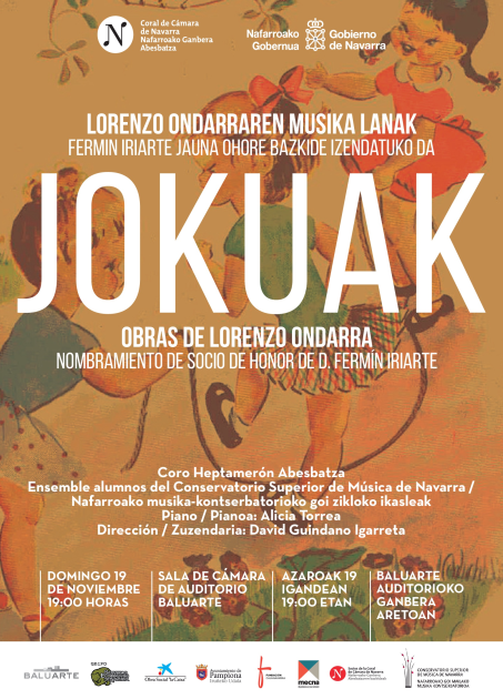 Navigation La Coral de Cámara de Navarra /Nafarroako Ganbera Abesbatza (CCN-NGA) se fundó el 14 de abril de 2008 en Pamplona, Navarra, y cuenta con David Guindano Igarreta como Director Artístico desde su fundación. Su objetivo es acercar al gran público la música en que la voz cantada, en sus diferentes facetas artísticas, tiene un papel destacado, con rigor y calidad, con excelencia artística referencial y con especialización no excluyente.