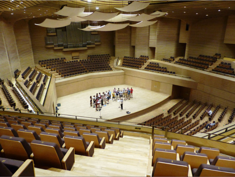 Wan an lai zi Beijing; Buenas noches desde Pekín. Escribimos estas palabras recién llegados de nuestro debut en el extranjero, una auténtica experiencia que como veniamos anunciando ha tenido lugar en un escenario inigualable. El templo artístico que pone la guinda a la imponente Ciudad de la Cultura de Tianjin, el Gran Teatro. En su interior, ni más ni menos que Concert Hall nos esperaba engalanado y con una acústica digna de admirar. No hace muchas semanas que The Philadelphia Orchestra, la o Anne Sophie Mutter o el conocido director Valery Gergiev pisaban las mismas tablas que las que ha pisado hoy nuestros coralistas.