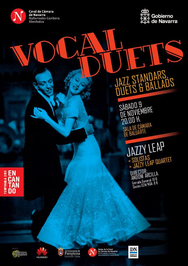 Jazzy Leap, sección de Jazz y Música Moderna de la Coral de Cámara de Navarra/Nafarroako Ganbera Abesbatza presenta VOCAL DUETS, un recorrido por los principales duos de la historia del jazz… El concierto estará dirigida por Andoni Arcilla.