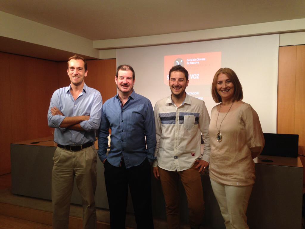 La Coral de Cámara de Navarra/Nafarroako Ganbera Abesbatza (CCN/NGA) ha presentado en rueda de prensa celebrada esta mañana en la sala de prensa de Auditorio Baluarte la Temporada Encantando 2015. Acompañados de Javier Lacunza, director gerente de Baluarte y Cristina Urdánoz, Directora de Acción Cultural del Departamento de Cultura del Gobierno de Navarra, el Director Artístico, David Guindano, director artístico e Iñigo Oses, gerente de la CCN/NGA han ido desgranando los principales rasgos ante los numerosos medios de comunicación que han asistido al acto.